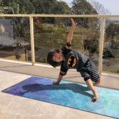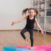 This extra-durable mat offers a soft grip and cushion to support your child’s playful yoga practice.