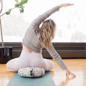 This traditional round meditation cushion is filled with organic buckwheat hulls that can be removed as needed for easy height adjustments.